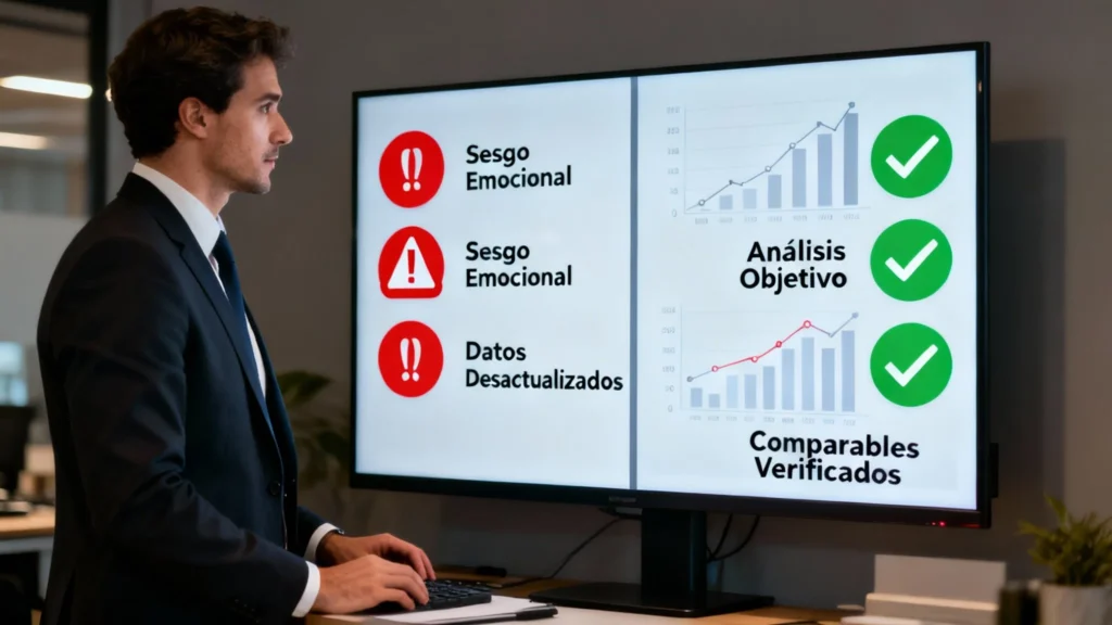 Uno de los fallos más frecuentes es confundir el precio publicado en portales con el valor real de la propiedad. Esa cifra que ves online no es neutral: incluye expectativas del vendedor, margen de negociación, y a menudo está desactualizada o corresponde a inmuebles que llevan meses sin venderse.