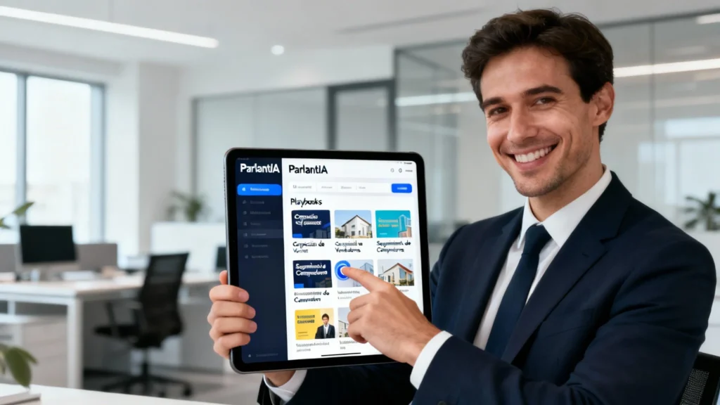 Los playbooks de ParlantIA convierten tareas críticas —valoración, captación, scoring, marketing, análisis de mercado— en flujos repetibles, medibles y escalables. No se trata de sustituir el factor humano, sino de potenciarlo: libera tiempo de tareas administrativas para dedicarlo a lo que realmente importa: construir relaciones, negociar con criterio y ofrecer un servicio excepcional.