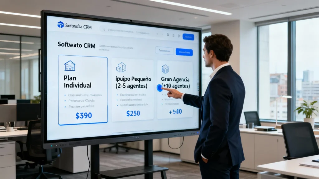 En este segmento, existen varias opciones interesantes. Busca soluciones cloud que ofrezcan planes para agentes individuales o pequeños equipos, generalmente con un coste mensual inferior a 100 euros. Algunas opciones populares incluyen CRMs generalistas adaptados al inmobiliario o soluciones específicas del sector con versiones básicas.